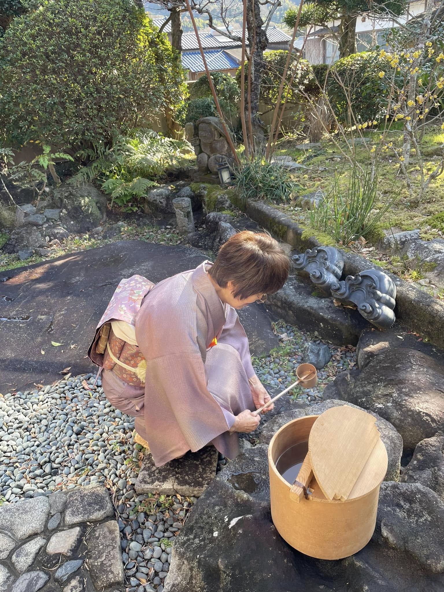 毎年初釜で利用して頂くお社中の皆様、先生が亡くなられた後も先生の教えの通りに集われる。 今回は暮れに敬愛する人生の先輩から頂いたお母様の遺品のお釜と小棚と水指を供養を兼ねて使わせて頂いた。 久し振りの茶事に心が引き締まりました。 About The Author小林 美智代Recent PostedJanuary 18, 2026ブログ2026年(令和8年)初釜December 8, 2025ブログ重要文化財:浮嶽神社の仏像November 24, 2025ブログ静かな裏山November 2, 2025ブログ11月は「炉開き」茶人の正月ですJune 15, 2025ブログ夏椿小林 美智代の記事一覧